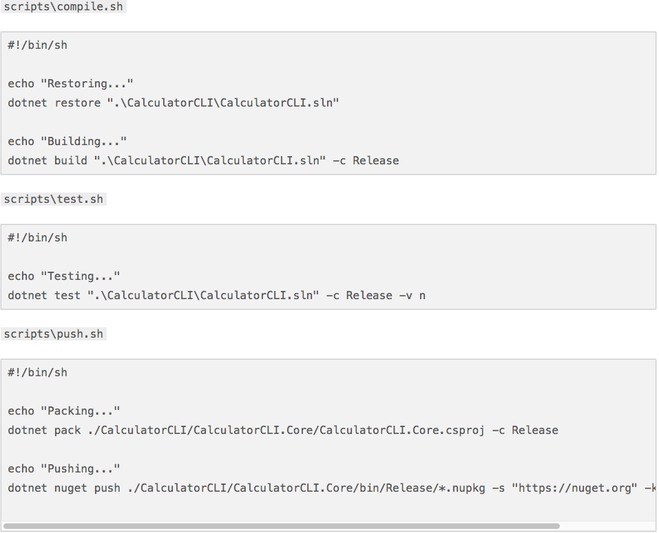 As in the previous tutorial, we used different commands in order to build and test the solution. Now, we are going to add more commands to pack and publish the packages.
