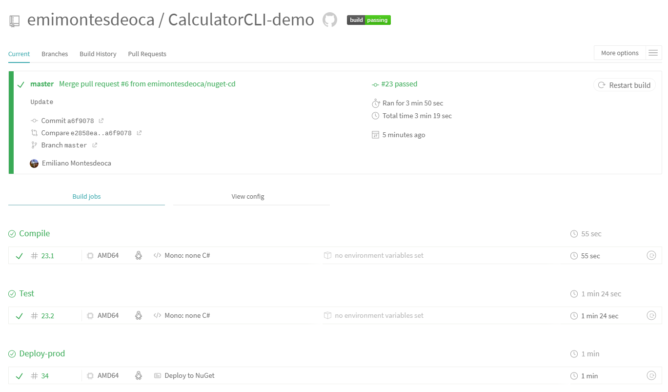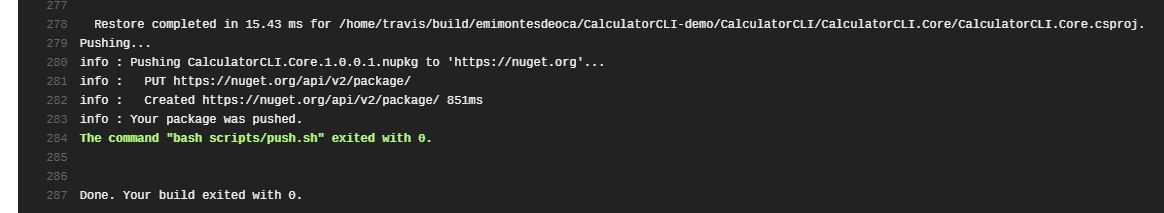 In this tutorial we found out about how to automate our NuGet package delivery. We used some tools like TravisCI, stages and dotnet nuget.