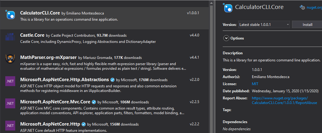 I will be using the solution from my last tutorial, which has a .NET Core library class called CalculatorCLI.Core.
