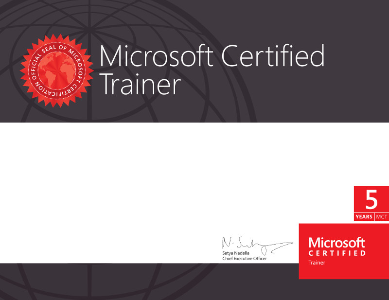 Los Microsoft Certified Trainers (MCT) son los principales técnicos y expertos de instrucción en las tecnologías de Microsoft. Este exclusivo grupo de profesionales de formación técnica de Microsoft disponen de las ventajas de la certificación en formación MCT y su suscripción, lo que incluye el acceso a toda la biblioteca de productos oficiales de certificación y formación de Microsoft; descuentos sustanciales en exámenes, libros y productos de Microsoft; recursos de preparación y acceso a la comunidad online solo para miembros, así como invitaciones para eventos y programas exclusivos.